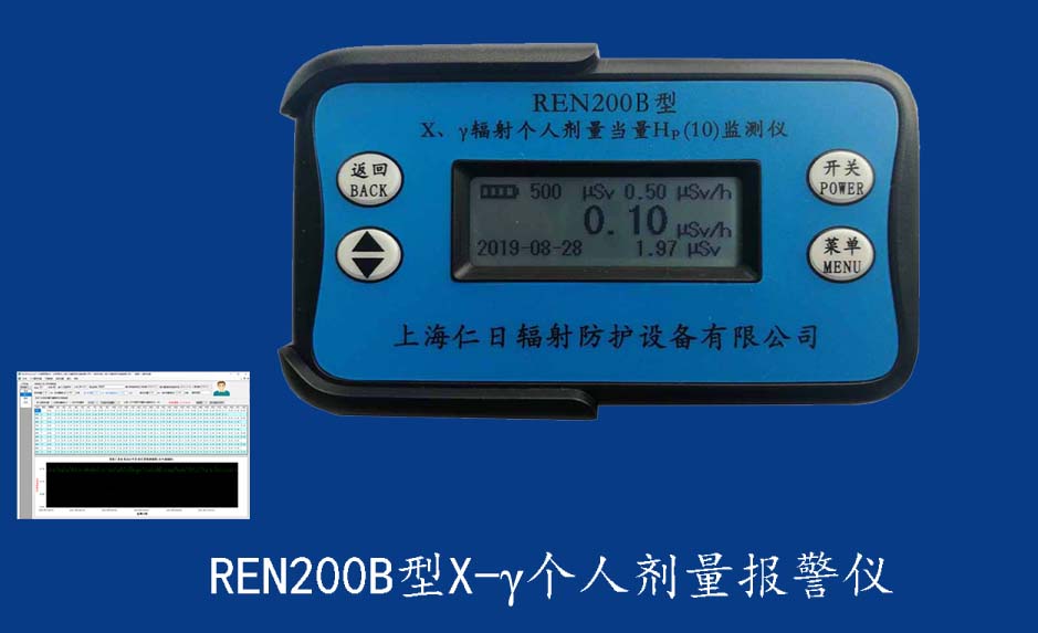 REN200型X、γ個人劑量報警儀(又叫X、γ輻射個人劑量當量HP(10)監測儀)內置高靈敏度蓋格計數管為探測器,主要用來監測各種放射性工作場所的X、γ以及硬β射線的輻射,具有響應快,測量范圍寬的特點。能顯示工作場所的劑量當量率和累積劑量,更換電池時,日期及累積數據能永久保存。可選配RenRiPersonal個人劑量管理軟件,該軟件可存儲多個人的歷史數據,能記錄日累積、月累積、年累積、輻照時長、計算平均劑量率、扣除或不扣除本底輻射,且以文字和圖譜的方式展現數據。廣泛應用于核電站、加速器、鋼鐵、化工、同位素應用、醫院、工業X、γ無損探傷、放射醫療、鈷源治療、γ輻照、放射性實驗室、核設施周圍環境監測